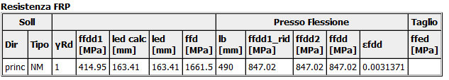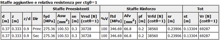 La seguente tabella, che completa le altre due tabelle riportate in precedenza, riporta i dettagli del calcolo della resistenza efficace di progetto di rinforzo a taglio.