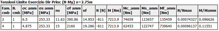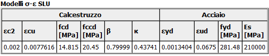 I valori utilizzati dal programma per la verifica delle tensioni di esercizio sono riportati nella seguente tabella:
