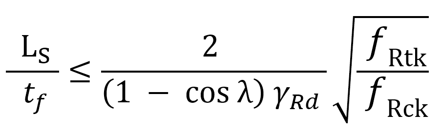 fRck = 80 MPa; fRtk = 30 MPa; λ= 30°; γRd= 1.3; tf = 0,337 mm