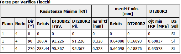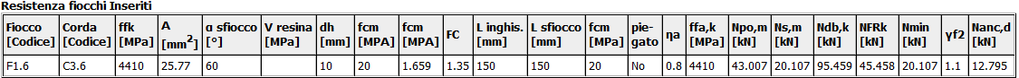 Nella seguente tabella sono riportati i dettagli della verifica dei fiocchi di ancoraggio per il rinforzo dei nodi.