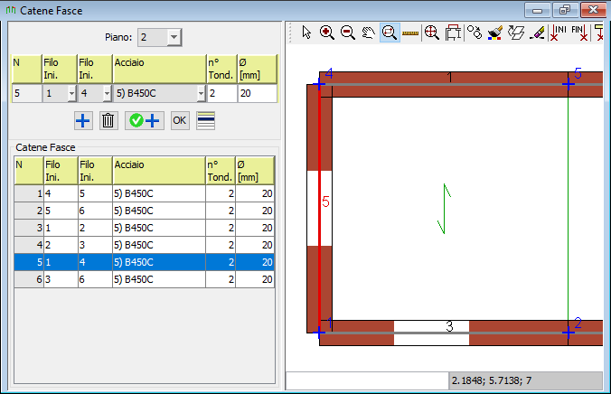 Le catene non fanno parte del modello FEM. Il programma tiene conto di una catena solo se è disposta in parallelo ad una fascia, e solo per il calcolo della resistenza della fascia.