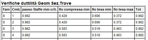 Tabella Verifiche Duttilità: è riportato la sintesi delle verifiche di duttilità per un elemento.