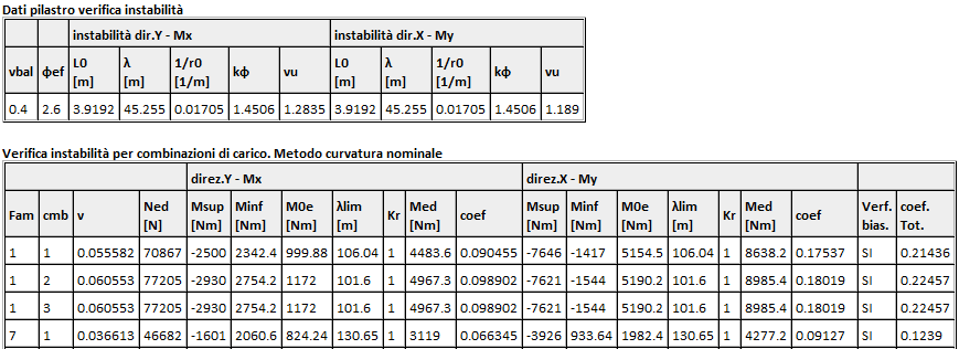 Le verifiche di instabilità per i pilastri sono effettuate con il metodo della curvatura nominale come indicato nel §5.8.8 del EC2-2005. Sono di seguito riportate le tabelle con i risultati delle verifiche. I simboli fanno riferimento la § 4.1.2.3.9.2 delle NTC18 e al §5.8.8 del EC2-2005 (o anche al documento metodo_curvatura_nominale.pdf [8] )