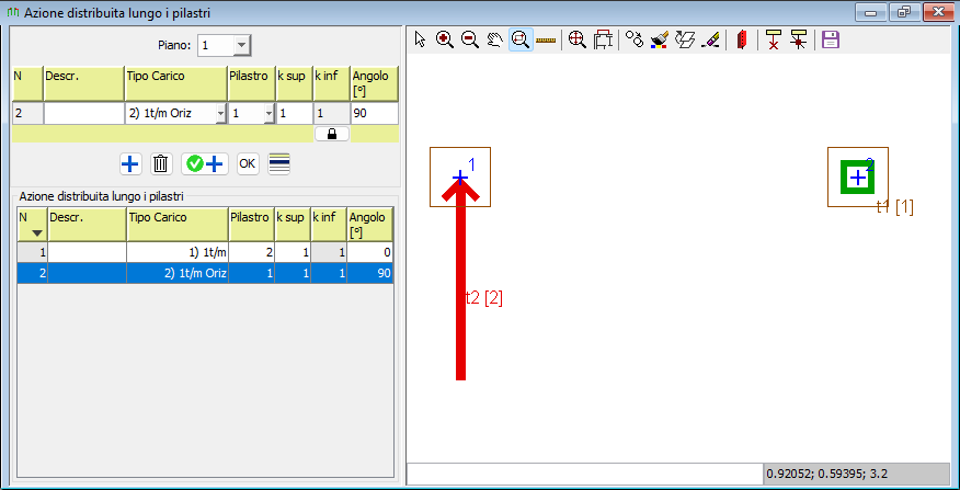 L'inserimento di un carico distribuito lungo i pilastri avviene mediante l'individuazione dei seguenti parametri: